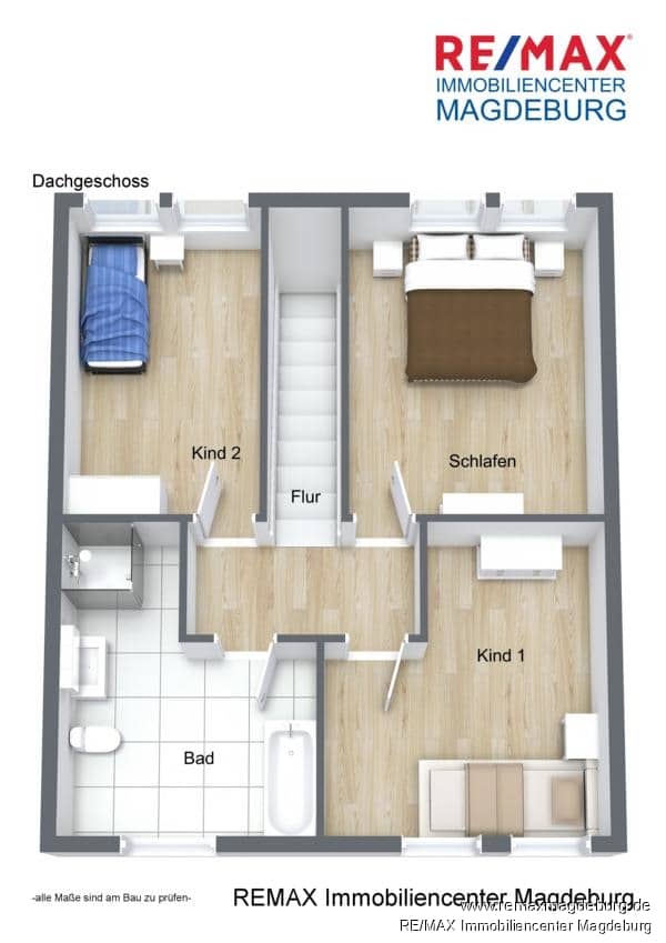 Vom Wohnbereich, gelangen sie über die Treppe in die zweite Wohnebene. Hier befinden sich drei weitere Schlafräume sowie ein geräumiges Tageslichtbad mit Dusche und Badewanne.