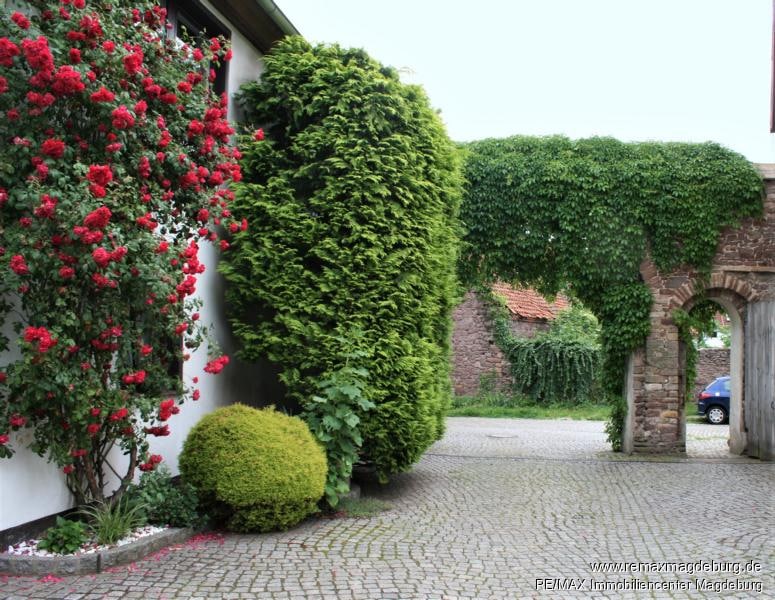 Auf dem sehr gepflegtem Vorderhof, mit angrenzender Grünfläche, ist jeweils eine Garage den 4 Wohneinheiten zugeordnet.