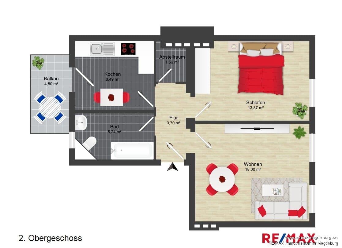 Vom zentralen Flur aus erreichen Sie das Tageslichtbad mit Badewanne und Fenster, die gemütliche Küche mit Zugang zum ostseitig ausgerichteten Balkon, eine praktische Abstellkammer, das geräumige Schlafzimmer sowie das helle Wohnzimmer.