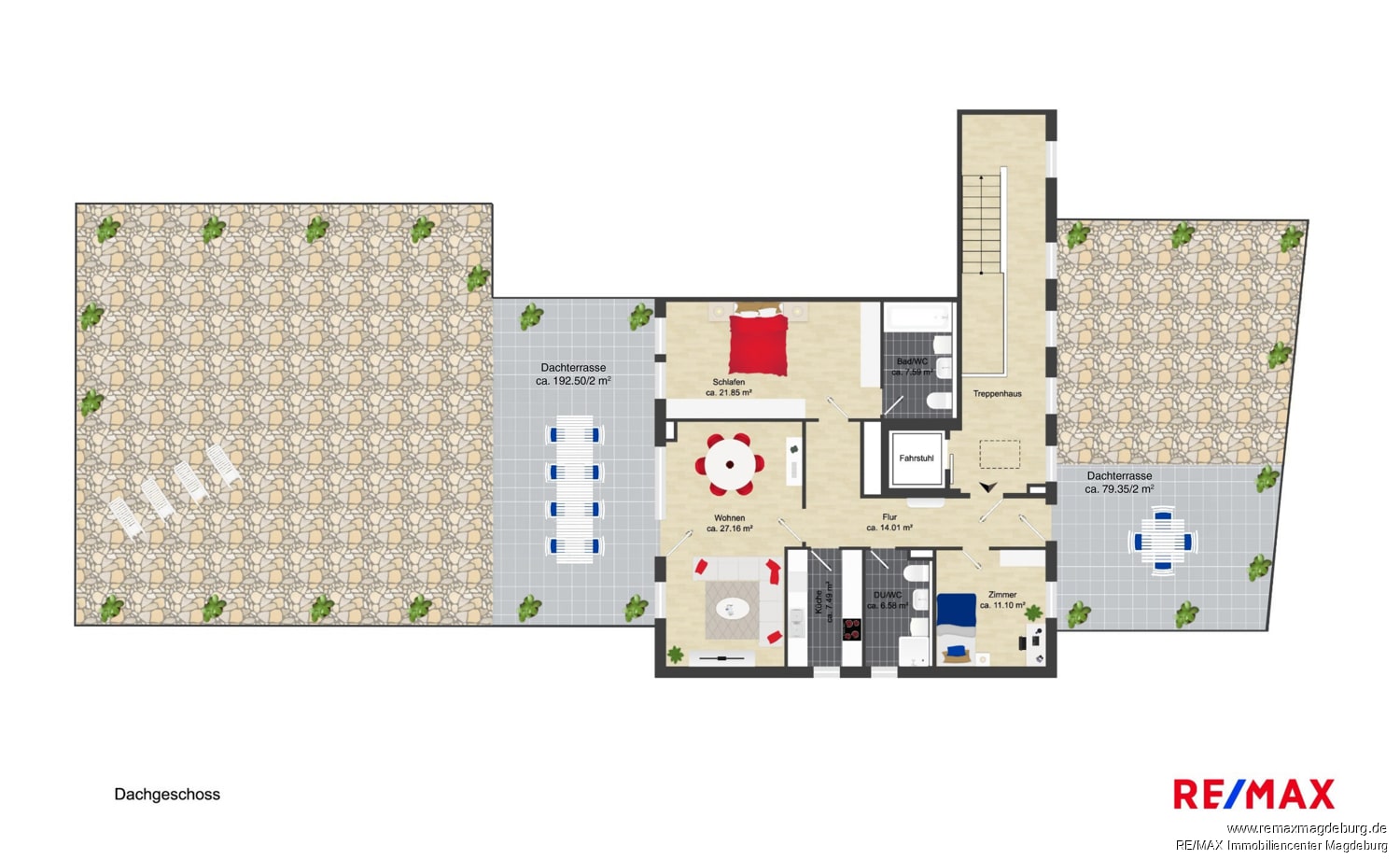 Ein weiteres Highlight dieser Wohnung ist die zweite ca. 79m² große Terrasse, welche einen spektakulären Blick auf den Magdeburger Dom gewährt – ein echtes Alleinstellungsmerkmal!