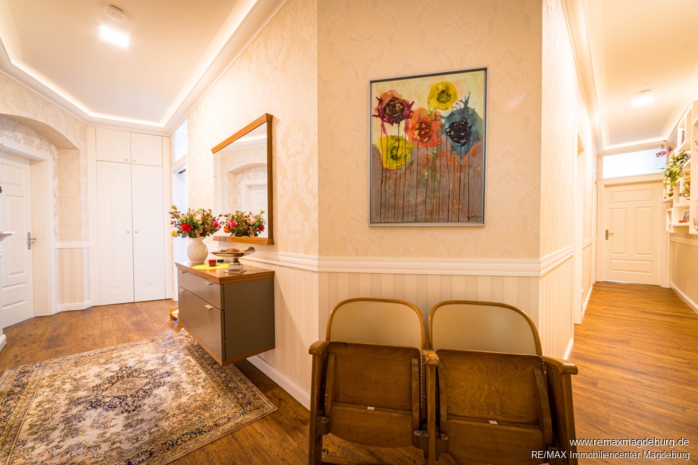 Die vielen Details der 4 Zimmer, Designer Tapeten an Wänden, ein ausgewähltes Lichtsystem aus direkter und indirekter Beleuchtung, ein prunkvoller Kronleuchter und vom Tischler maßgefertigte Möbel sind nur wenige Highlights, die für diese Wohnung sprechen. Die Liebe zum Detail findet sich in allen Räumen wieder.