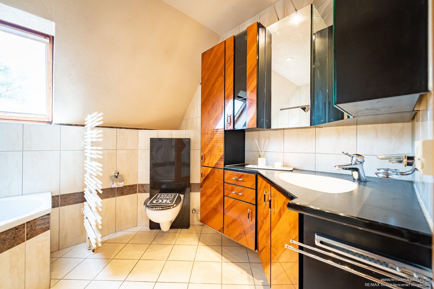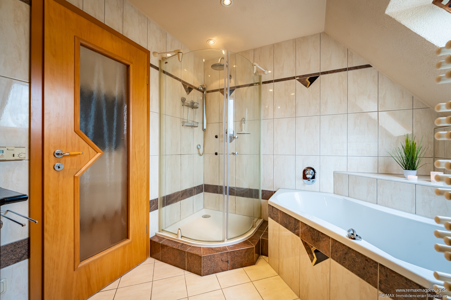 - voll ausgebautes Tageslichtbad mit Badewanne und Dusche,