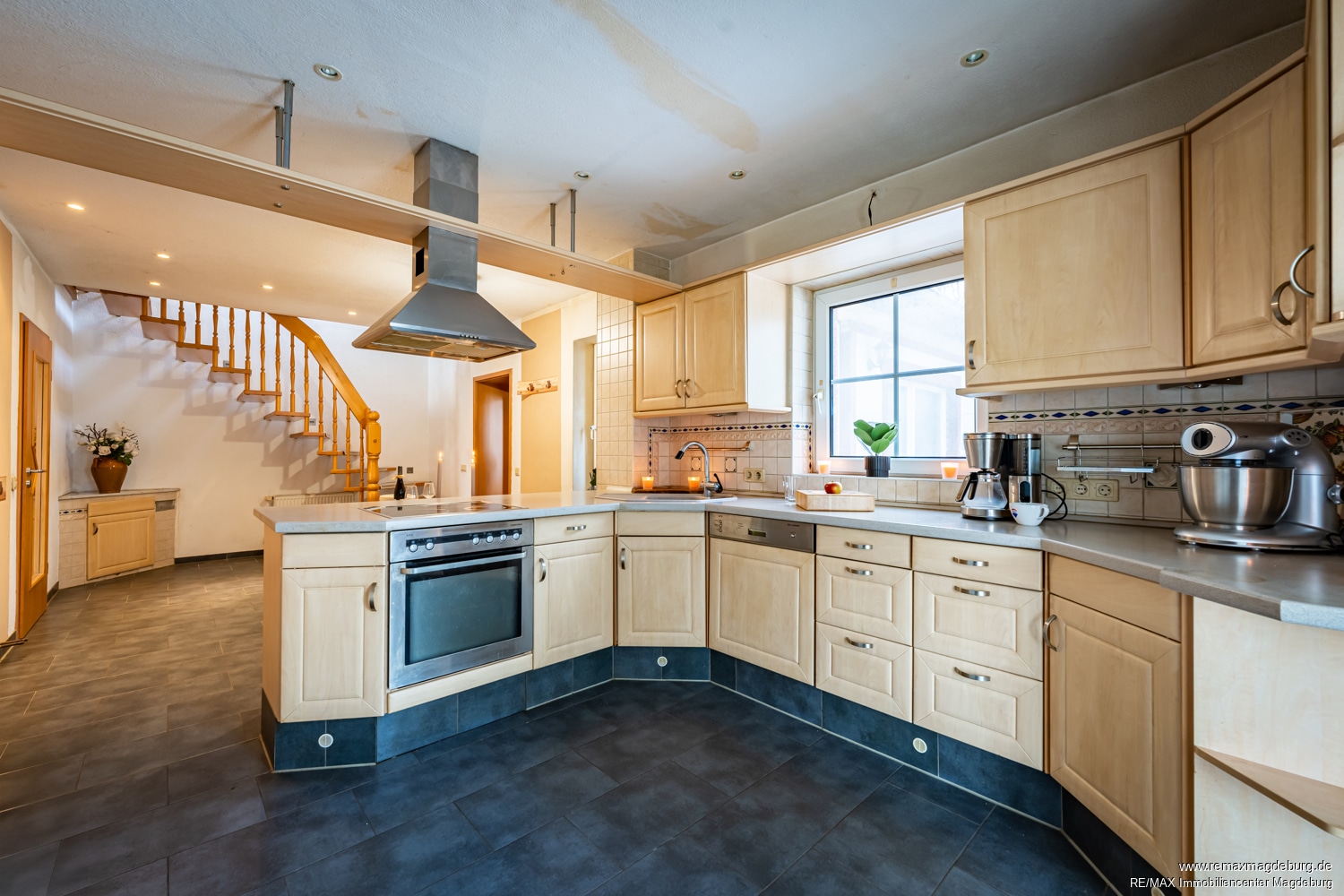 Das Haupthaus erstreckt sich über Erd- und Dachgeschoss und empfängt Sie im Erdgeschoss mit einer angenehmen Offenheit. Der Wohn- und Essbereich sowie die Küche verfügen jeweils über einen direkten Zugang zum Wintergarten. Dieser lichtdurchflutete Raum verbindet Wohnen und Garten auf harmonische Weise und schafft zu jeder Jahreszeit eine besondere Wohlfühlatmosphäre.