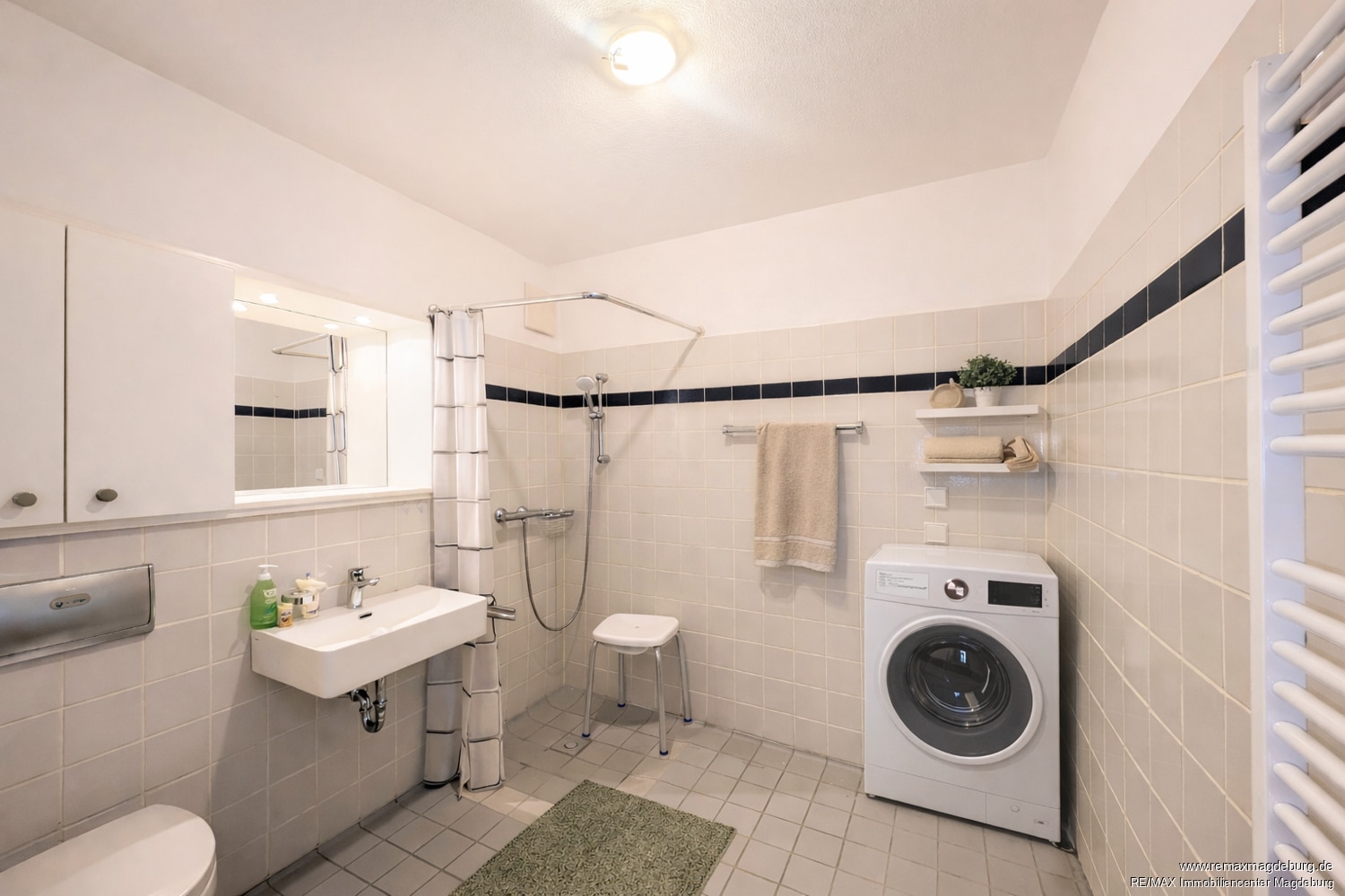 Der durchdachte Grundriss ermöglicht eine komfortable und selbstständige Lebensführung. Über den großzügigen, schwellenarmen Eingangsflur mit praktischem Einbauschrank sind alle Räume bequem erreichbar. Das moderne Badezimmer ist mit einer bodengleichen Dusche ausgestattet und funktional sowie seniorengerecht gestaltet.