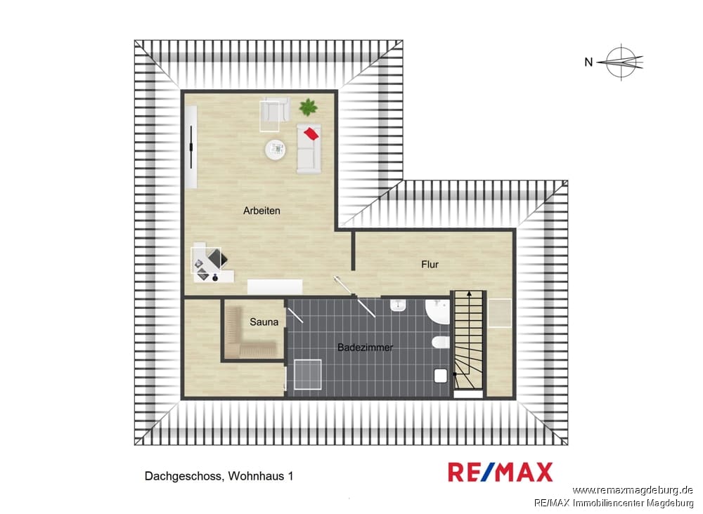 Im Wohnhaus 2 steht ein Badezimmer mit Dusche & Sauna, sowie ein großzügiges Büro-, Gäste- oder Kinderzimmer zur Verfügung.