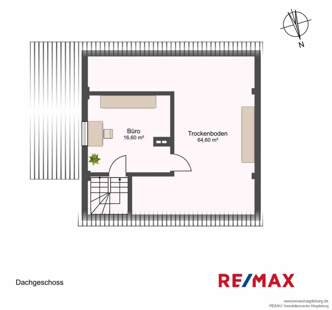 Das Dachgeschoss bietet zusätzlichen Raum in Form eines weiteren Zimmers und eines Trockenbodens, der flexibel genutzt werden kann und wertvollen Stauraum bereitstellt.